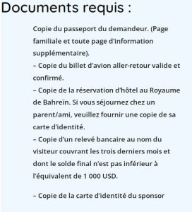La procédure de demande de visa pour le bahrain est une procédure qui se fait par notre agence. Une fois la demande de visa pour le bahrain approuvée, vous recevrez le visa approuvé par mail. Visa Bahrain Maroc